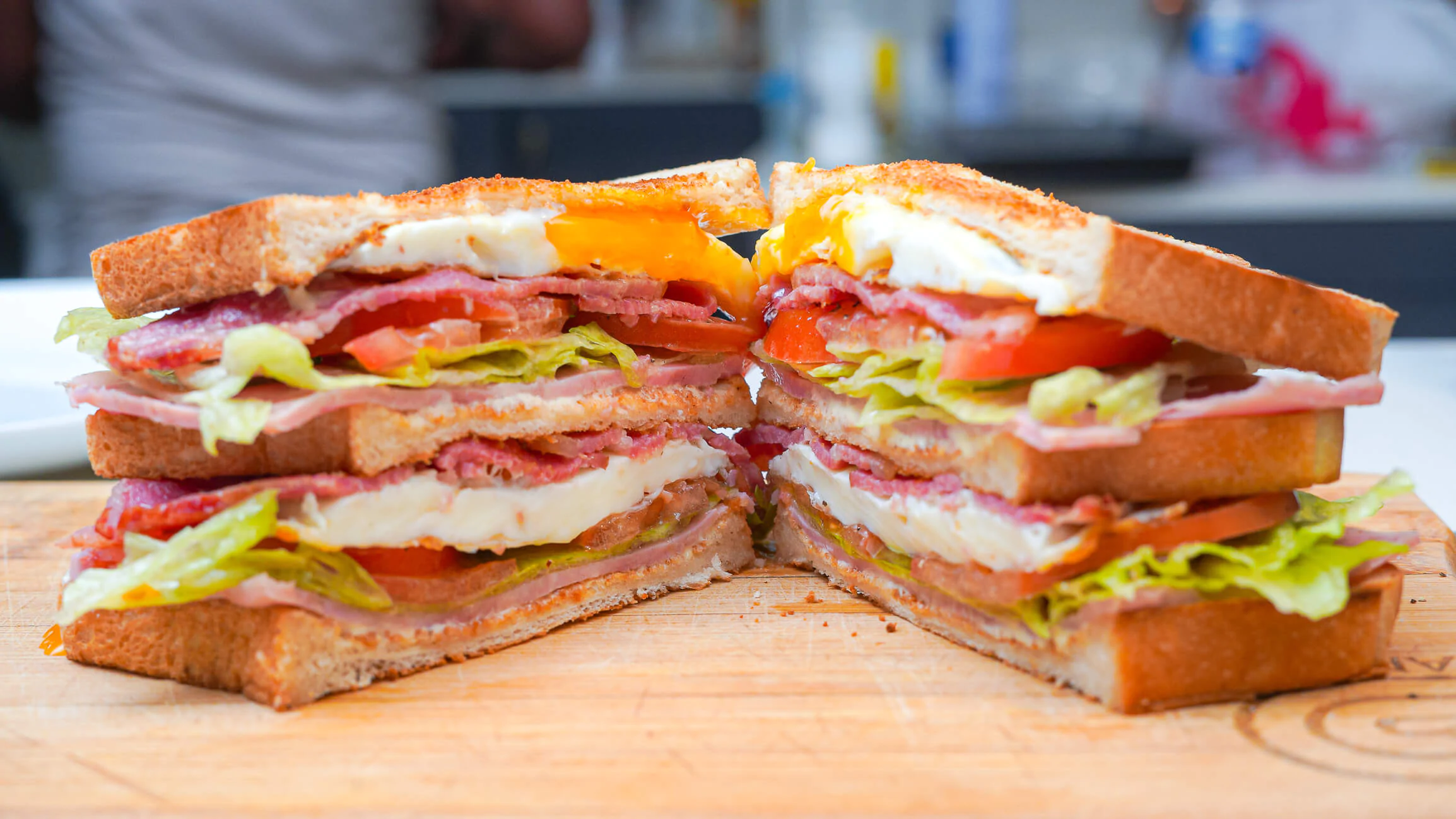 4. Then stack up Colcom Picnic Ham, lettuce, tomato, egg and finish off with Colcom Value Bacon.